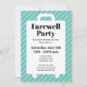 Adieu adieu élégant en sortant de la fête modèle d'invitation. Invitations sur mesure avec typographie et silhouette de valise de chariot. Couleurs turquoises ou personnalisées. invitations cool pour une fête de retraite surprise, un dîner, un déménagement, un voyage, des vacances de voyage ou un rassemblement avant de quitter (à l'étranger) dans une nouvelle maison. Texte de faire-part personnalisé. Amusez-vous à célébrer ! Parfait pour ami, collègue, collègue, collègue, retraité heureux, voyageur, coéquipier, colocataire, colocataire, camarade, enfants, patron, employé, voisin, collègue, employé de bureau, entraîneur, entraîneur, soldat etc. Adios amigos !