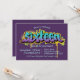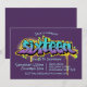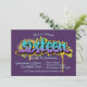 Une invitation de graffiti désordonnée pour un enfant de 16 ans. Violet, bleu et orange.