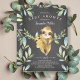 Jolie invitation baby shower avec un doux bébé paresseux avec maman encadré de feuilles d'aquarelle verte naturelle sur un arrière - plan de tableau noir. Retournez notre invitation pour voir une feuille verte assortie pour une touche spéciale.