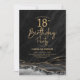 Gate noir et or 18e anniversaire invitation de fête. Design élégant et moderne avec aquarelle agate marbre arrière - plan, fausse parties scintillant or et typographie script de police. Carte invitation branchée parfaite pour une célébration anniversaire féminine élégante. Invitations Zazzle imprimées ou téléchargement instantané modèle imprimable numérique.