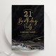 Gate noir et or 21e anniversaire invitation de fête. Design élégant et moderne avec aquarelle agate marbre arrière - plan, fausse parties scintillant or et typographie script de police. Carte invitation branchée parfaite pour une célébration anniversaire féminine élégante. Invitations Zazzle imprimées ou téléchargement instantané modèle imprimable numérique.