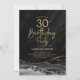 Invitation à la fête du 30e anniversaire d'agate noir et or. Design élégant et moderne avec aquarelle agate marbre arrière - plan, fausse parties scintillant or et typographie script de police. Carte invitation branchée parfaite pour une célébration anniversaire féminine élégante. Invitations Zazzle imprimées ou téléchargement instantané modèle imprimable numérique.