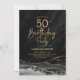 Gate noir et or 50e anniversaire invitation de fête. Design élégant et moderne avec aquarelle agate marbre arrière - plan, fausse parties scintillant or et typographie script de police. Carte invitation branchée parfaite pour une célébration anniversaire féminine élégante. Invitations Zazzle imprimées ou téléchargement instantané modèle imprimable numérique.