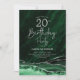Émeraude vert et argent agate 20e anniversaire invitation de fête. Design élégant et moderne avec aquarelle agate marbre arrière - plan, faux parties scintillant argent et typographie script. Carte invitation branchée parfaite pour une célébration anniversaire féminine élégante. Invitations Zazzle imprimées ou téléchargement instantané modèle imprimable numérique.