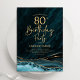 Turquoise et or agate 80e anniversaire invitation de fête. Elégant design moderne avec aquarelle turquoise agate marbre arrière - plan, faux parties scintillant or et typographie script. Carte invitation branchée parfaite pour une célébration anniversaire féminine élégante. Invitations Zazzle imprimées ou téléchargement instantané modèle imprimable numérique.