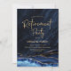 Invitation de la fête de la retraite en bleu marine et or agate. Elégant design moderne avec aquarelle bleu royal agate marbre arrière - plan, fausse parties scintillant or et typographie script police. Carte invitation tendance idéale pour une célébration de retraite élégante pour femmes. Invitations Zazzle imprimées ou téléchargement instantané modèle imprimable numérique.