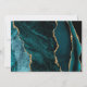 Le bord gauche de cette élégante faire-part de mariage moderne est doté d'une bordure turquoise en aquarelle bleue ornée d'une parties scintillant en faux or. Le texte personnalisable combine écriture manuscrite couleur or, cuivre et polices italiques sur un arrière - plan orange brûlé. L'envers présente un design d'agate turquoise et or assorti.