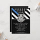Cette conception comprend un drapeau de la police avec des rayures noires et blanches, ainsi qu'une fine bande bleue. L'insigne de police et le texte en argent sont au-dessus de tous les détails du parti pour l'agent d'application de la loi, le shérif, le capitaine ou les chefs du parti de retraite qui prend sa retraite.