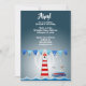 Un design mignon d'un navire avec de la fumée qui envole son entonnoir naviguant sur la mer avec un phare éclairant le chemin. Une rangée de drapeaux à thème nautique divisent le texte de l'illustration de dessin animé et le dos a des modèles pour ajouter des informations supplémentaires sans supplément.