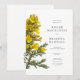 Une illustration numérique originale de fleurs jaunes d'ajonc d'Europe dans le style de croquis botaniques vintage est présentée sur cette invitation.