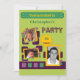 Pour les hommes - invitation de fête d'anniversaire avec nom et trois photos. Pour tous les âges, personnalisez-vous pour convenir - l'exemple montré est pour une fête de 50ème anniversaire. Ajoutez la date, l'heure, le lieu et les détails RSVP. Vert, violet foncé et jaune.