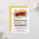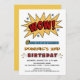 ZOWIE ! ! Notre invitation de style comique super cool est une façon lumineuse et amusante d'invitation invités de votre enfant fête d'anniversaire. Superhero 3D lettrage en or jaune, des pops rouges, bleus et noirs sur un arrière - plan blanc. L'ajout du nom et de l'âge de votre enfant garantit une invitation unique que vous ne verrez pas ailleurs. Nous avons choisi la couleur #F5CA4B jaune or pour l'envers, mais vous pouvez "customiser" pour changer la couleur de l'arrière si vous le souhaitez. Essayez #57AAD8 bleu ou #AE0407 rouge. Voir d'autres invitations pour les anniversaires d'enfants et cartes de voeux chez Zigglets ici à Zazzle.