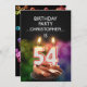 Ajoutez un nom pour customiser cette invitation unique à la fête.Une invitation amusante à la fête du 54e anniversaire avec des numéros heureux de bougies brûlant sur un cupcake au chocolat. Voir toute la gamme d'invitations et de cartes dans mon magasin.