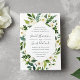 Notre faire-part de mariage Albâtre entoure vos détails de mariage avec un cadre géométrique moderne de verdure aquarelle peinte, feuillage botanique et fleurs de roses et de pivoines blanches.