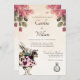 Alice in Wonderland Faire-part de mariage présente des roses roses, le lapin, l'horloge, un papillon et Alice. Elégante Alice au faire-part de mariage des Merveilles.