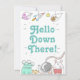 "Hello Down There" écrit en lettres lumineuses et colorées avec de drôles petites créatures spatiales qui disent bonjour à nous les Terriens. Il y a de la place sur le dos pour votre message personnel (ou vous pouvez supprimer le texte complet si vous préférez).