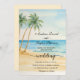 Une élégante invitation de mariage avec plage aquarelle et palmiers que vous pouvez customiser avec vos détails.