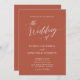 Tout en une élégante calligraphie Faire-part de mariage en terre cuite tendance avec détails sur le dos... Notre unique faire-part de mariage de typographie "All in One" propose un script de calligraphie blanche combiné à du texte serif sur un arrière - plan en terre cuite tendance. L'ARRIÈRE de l'invitation contient tous les DÉTAILS que vous verriez habituellement sur des cartes séparées dans le paquet mariage, y compris l'heure et le lieu de réception, les options d'hébergement, le site Web du mariage, le RSVP et les informations sur le registre des cadeaux. Cette faire-part de mariage de style moderne a été conçue pour être à la fois élégante et économique... sans parler des économies de temps. Il y a également un modèle graphique de code QR que vous pouvez remplacer par votre propre code (ou supprimer si vous n'avez pas l'intention d'en utiliser un). Tous les exemples de texte (mis à part les éléments de calligraphie graphique) peuvent être facilement révisés avec vos propres informations sur le modèle de personnalisation.