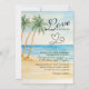 Une élégante invitation de mariage avec plage aquarelle et palmiers que vous pouvez customiser avec vos détails.