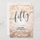 Élégant Glam Rose Gold Parties scintillant Lights 50e anniversaire Script All In One invitation modèle avec lumières scintillantes et script de typographie moderne.