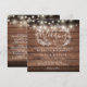 A rustic wedding invitation featuring pretty string lights and a delicate hand-drawn rustic floral garland of botanical leaf foliage with stylish script typography, on a rustic wood background. Personalize with all your special wedding day information on the reverse including your RSVP, accommodation, and additional details. Designed by Thisisnotme©