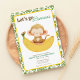 Célébrez la journée spéciale de votre enfant dans un style absolument adorable avec notre "Let's Go Bananas Monkey Birthday Invitation"! Conçu avec un singe ludique assis au sommet d’une grande banane et bordé d’un charmant motif de jungle verte, cette invitation vous donnera un ton amusant pour la fête d’anniversaire de votre enfant. Facile à personnaliser, vous pouvez ajouter le nom de votre enfant, les détails de la fête et modifier les jeux de couleurs de la fête. cliquez sur customiser et modifiez l'arrière - plan pour modifier le thème de couleur de l'invitation.