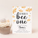 Cette invitation à la fête du premier anniversaire sur le thème de l'abeille mignonne présente des illustrations d'abeilles d'aquarelle jaune avec "si doux à être un" en écriture calligraphie noire. Personnalisez avec les détails de votre fête en dessous.