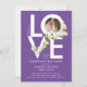Cette invitation contemporaine pour la Saint-Valentin présente une typographie blanche en gras qui forme le mot "Amour", avec une photo de couple nichée à l'intérieur de la lettre "O". Le design est rehaussé de délicates ornementations florales blanches, sur un fond violet élégant. La typographie minimaliste assure une lisibilité facile, et les textes et la photo sont entièrement personnalisables. Bien qu'elle soit parfaite pour la Saint-Valentin, cette invitation peut également être adaptée pour d'autres occasions spéciales, y compris les mariages, les anniversaires, les naissances, Pâques ou tout événement festif. Le verso de l'invitation est également violet, ce qui maintient une apparence cohérente et élégante pour diverses célébrations.