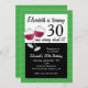 Cette invitation à la fête de 30e anniversaire présente une représentation graphique de deux verres de vin rouge et le texte : (nom) a 30 ans et y gagne ! L'invitation offre du texte personnalisable pour vous permettre d'ajouter les détails de votre fête. La couleur de la bordure arrière - plan est vert vif, agrémentée de tourbillons blancs. La couleur arrière - plan peut être customisée à toute couleur disponible.