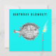 Invitations créatifs de fête d'anniversaire, avec un poisson amusant faisant un voeu soufflant une bougie d'anniversaire.