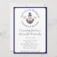 Ancre florale à thème nautique blanc avec un arrière - plan bleu marine Invitations de mariage