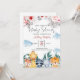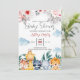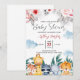 De mignons animaux de la jungle avec des nuages bleu aquarelle et des fleurs rouges et blanches en haut de l'invitation