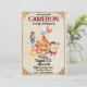 Cette invitation à la fête a pour thème le cirque vintage. L'arrière - plan est un motif de papier parchemin rustique avec un cadre ancien. Une image illustrée d'une tente vintage Big Top, d'un homme fort et d'animaux de cirque sont placés au centre. Un singe est représenté en équilibre sur une pile de boules, avec un lion mignon à côté.