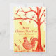 Célébrez avec une fête en l'honneur du Nouvel An chinois ~ Année du Coq ~ avec cette invitation décorée d'un coq lunatique près d'un arbre peint en aquarelle dans les tons rouge vif et jaune doré.