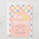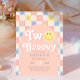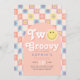 Cette invitation d'anniversaire de 2 ans pour filles aux accents groovy capture l'ambiance rétro des années 70 avec un thème rose mignon, des accents floraux et un motif à carreaux pastel. Entièrement personnalisable, elle comprend un espace pour les détails de votre fête dans une écriture élégante. Parfaite pour un anniversaire boho "Two Groovy", ce design ludique et féminin ajoute du charme au jour spécial de votre petite !