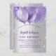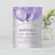 Pour un élégant 18ème anniversaire (ou tout âge). Un arrière - plan élégant à l'allure fausse argent. Décoré de violet, de faux parties scintillant couleur lavande et de ballons. Personnalisez et ajoutez un nom, un âge et des détails de la fête. Le nom est écrit avec un script de style manuscrit