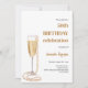 Une invitation moderne, élégante et glamour pour une fête d'anniversaire Pearls and Prosecco (n'importe quel âge) Un arrière - plan blanc avec verre, flûte avec bulles dorées et perles. Le nom est écrit avec un script de style moderne écrit à la main. Personnalisez et ajoutez les détails de votre fête.