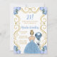 Cette invitation de fête d'anniversaire comprend un cadre doré élégant, une belle princesse aux cheveux blonds et une robe bleu poussiéreuse, des fleurs et un ballon. C'est parfait pour une fête d'anniversaire.