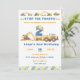 Modèle de carton d'invitation anniversaire Construction modifiable | Garçon camion bulldozer construction moderne | Tout âge
