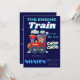 Cette cool chugga chugga choo choo anniversaire de enfant invitation de fête est l'ajout parfait à toute célébration thématique de train moteur! Contre un riche arrière - plan bleu marine (personnalisable), un chorégraphe dynamique et un chef d'orchestre traversent la scène et des textos audacieux demandent à chacun de monter dans le train et de rejoindre la fête. Le texte personnalisable vous permet de changer facilement le nom du garçon ou de la fille d'anniversaire ! L'arrière de l'invitation comprend d'impressionnants graphismes des billets de train et des panneaux de chemin de fer, ainsi que de l'espace pour customiser et modifier les détails de la fête. Les détails comprennent la date, l'heure, l'emplacement et la liste de souhaits, qui peuvent tous être modifiés pour répondre aux besoins des acheteurs!