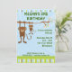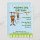 Cette invitation à la fête anniversaire de enfant présente deux mignons petits singes accrochés à une branche d'arbre.