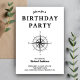 Invitation vos invités avec cette invitation de fête nautique moderne avec une boussole noire avec typographie élégante contre un arrière - plan blanc. Ajoutez simplement les détails de votre événement sur ce modèle facile à utiliser pour en faire une invitation unique. Retournez la carte pour révéler un motif rayé noir et blanc au dos de la carte.