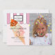 Cette invitation personnalisée pour la fête d'anniversaire du salon de crème glacée de cette fille mignonne et rétro comprend un arrière - plan rose clair avec votre photo, une crème glacée avec des arroses et une cerise sur le dessus, et des auvents avec des rayures roses et blanches. L'envers est doté d'un arrière - plan rose pâle avec des rayures de diagnostic de fausse feuille d'or. Personnalisez-vous pour répondre à vos besoins. Vous pouvez trouver d'autres produits correspondants dans mon magasin.