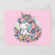 Invitations de fête d'anniversaire personnalisées pour petite fille rose et bleu sucré. Une jolie licorne entourée de fleurs. Mignonne pour toute petite fille qui aime les licornes et les fleurs!