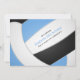 Cette invitation à la fête d'anniversaire de volley-ball présente l'image d'un volley-ball qui a des panneaux bleu clair, noir et blanc, sur lesquels vous pouvez customiser les détails de la fête pour convenir à votre fête de volley-ball - par katz_d_zynes