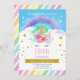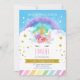 Conception Unicorne et arc-en-ciel. Tout le texte est personnalisable - il suffit d'aller à "personnaliser" pour taper vos propres informations d'événement sur l'exemple de texte. Pour accéder aux outils de montage avancés, accédez à Personnaliser, faites défiler et appuyez sur le lien "cliquer pour customiser plus loin".