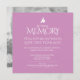 Souvenez-vous du décès de votre être cher avec cette invitation commémorative commémorative de la mort. Un simple et apaisant graphisme de colombe blanche sur la couleur arrière - plan de votre choix, actuellement rose-violet. Personnalisez avec votre lieu, et le nom de votre être aimé et les détails de rsvp et votre photo préférée au verso. D'autres articles correspondants sont disponibles. Conçu par www.mylittleeden.com