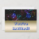 Invitations colorées lumineuses d'espace lointain pour des astronomes, des fans du sci fi et des fêtes d'anniversaire de garçon. La moitié supérieure de l'avant est un type abstrait style d'art dans des couleurs audacieuses et lumineuses telles que des bleus et des pourpres qui ressemblent aux planètes, aux asteroïdes ou aux météores tourbillonnant et voyageant dans l'espace extra-atmosphérique. L'invitation de thème d'astronomie vous lit sont invitées sur l'avant dans les lettres bleues d'effet de l'ombre 3d sur un fond d'effet en métal d'or. Customisez de retour avec vos détails d'invitation d'occasion spéciale. Invitations lumineuses mignonnes pour de futurs astronautes.