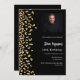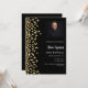 Une invitation moderne, élégante et raffinée. Un arrière - plan noir décoré de faux confettis d'or. Personnalisez et ajoutez une photo, un nom et des détails de la fête. Texte blanc.