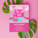 Faites un Plongeon avec cette invitation Pink Pool Party! Que ce soit pour un anniversaire ou une bachelorette, cette invitation est parfaite pour toute occasion. Le design met en valeur une scène de piscine ludique avec palmiers et flotteur de piscine flamand, ce qui en fait le moyen idéal pour exciter tout le monde pour la fête. Ne manquez pas le plaisir et envoyez cette invitation vibrante dès aujourd'hui!